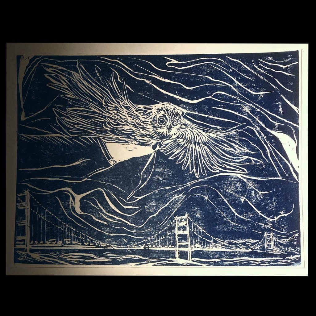 Linocut print/ Bird